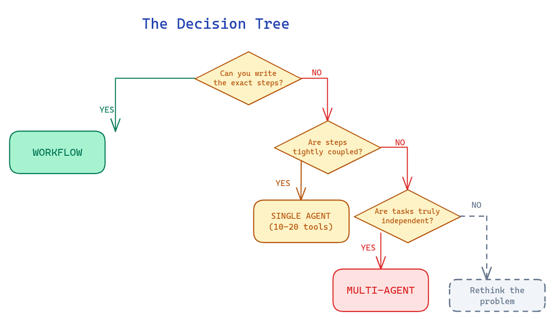 The progression isn't just about capability—it's about cost, complexity, and predictability. Move right only when absolutely necessary.